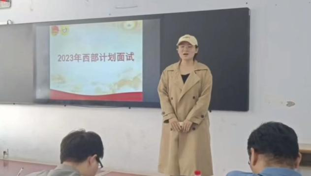 报名阶段完成之后,进入到了选拔阶段,选拔分为笔试和面试两部分。笔试环节主要考查同学们知识储备和思想准备情况。面试环节分为自我介绍和提问答辩。经过笔试面试环节,志愿者吴玉洋对于此次西部计划志愿服务有着这样的憧憬:“志愿服务不仅仅是一种职业选择,更是一种生活方式和价值观的体现。通过这次西部计划志愿服务的经历,我深刻认识到了自己的使命和责任,并将继续努力为社会做出更多的贡献。”