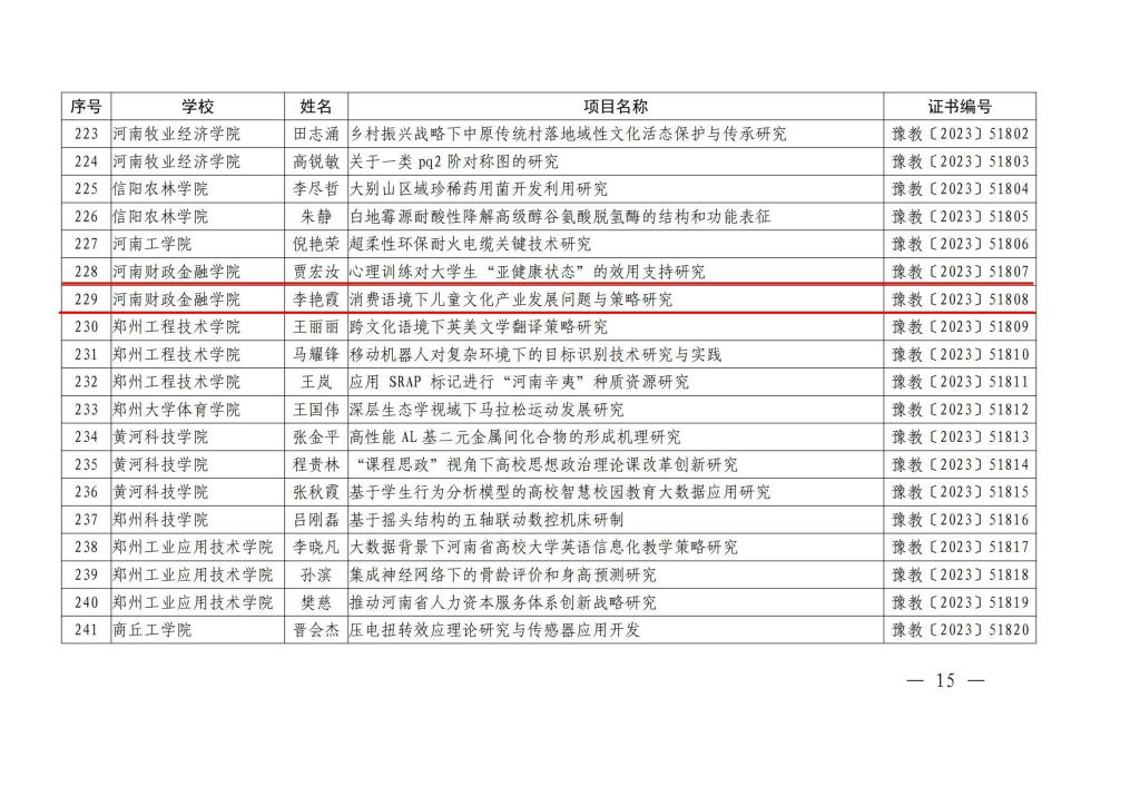 近日,河南省教育厅办公室发布了《关于公布2019年度河南省本科高等学校青年骨干教师培养对象考核结果的通知》(教办高〔2023〕285号),球友会官方网站贾宏汝、李艳霞2名教师顺利通过河南省高校青年骨干教师考核。