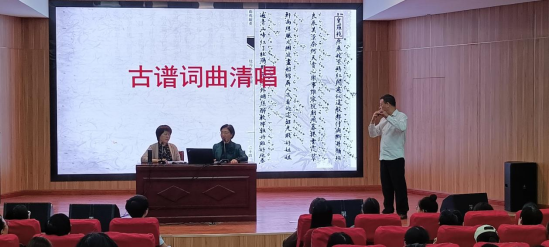 为深入贯彻习近平总书记关于“全面加强和改进学校美育,坚持以美育人、以文化人,提高学生审美和人文素养”的重要指示精神,弘扬优秀“非遗”文化,提高师生艺术修养,10月17日,文化与传播学院特邀曲学研究者陈玉成先生、文化与传播学院韩丽霞教授,在龙子湖校区音乐学院教学实训中心,举办“清音雅韵——古谱词曲清唱”专题讲座。校党委副书记、工会主席王勇军,文化与传播学院负责同志,300多名师生共同聆听了本次讲座。