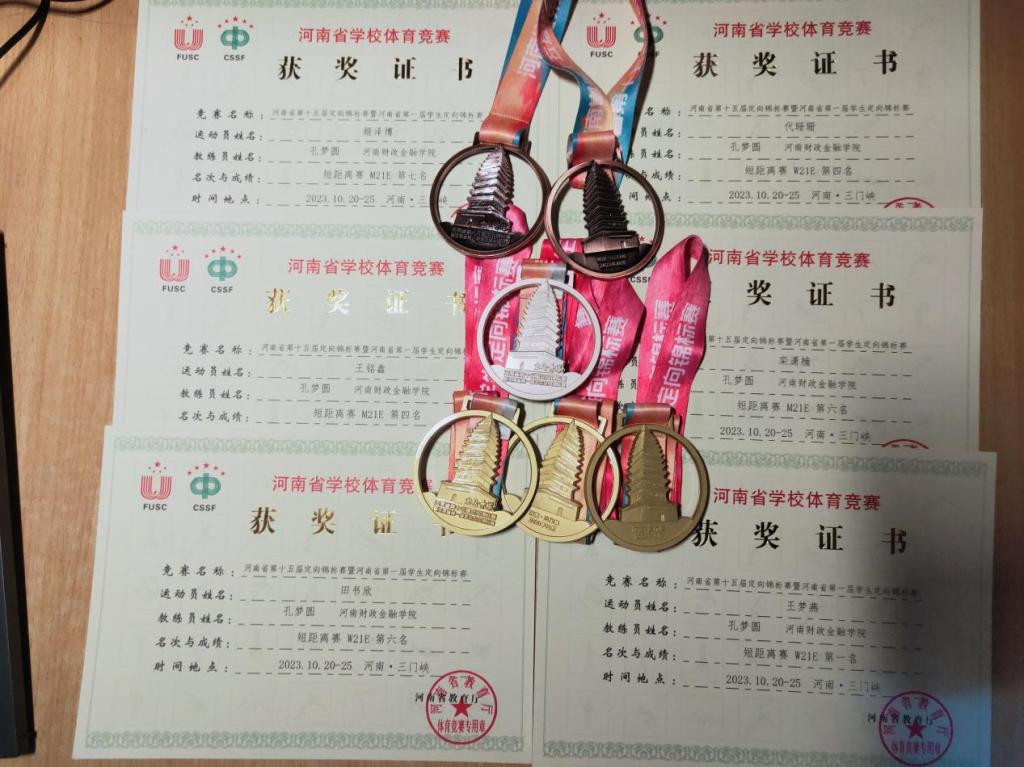 本次赛事由河南省学生体育总会、河南省无线电定向运动协会主办,河南省学生体育总会定向运动协会承办。全省36支代表队共500余名运动员参加比赛。本次比赛分短距离接力赛、短距离赛、中距离赛、长距离赛、接力赛五个项目和组别。经过五天的激烈比拼,共获得3金1银2铜,3个第四名,2个第五名,5个第六名,2个第七名,1个第八名的优异成绩。特别是在中距离比赛中球友会官方网站运动员田舒欣、王梦燕,代姗姗包揽了W21E组别的金、银、铜牌,充分展现了财金运动健儿敢于拼搏、勇于挑战、超越自我的风采。