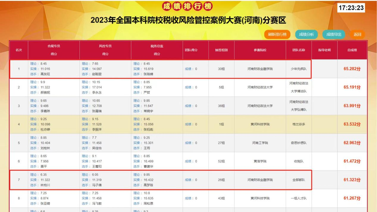 全国本科院校税收风险管控案例大赛旨在“以赛促训、以训促学”,提高财税教育改革与实践水平,激发大学生学习税法及财税知识的兴趣,培养综合素质和解决问题的能力,为经济社会高质量发展培养更多优质人才。本次等级赛分为理论与实操两个环节,理论部分以税收风险管理原理与基础为考核内容,实操部分主要从合规专员、风控专员、税务总监三个岗位的视角出发,运用大数据技术,对虚拟企业进行纳税风险的识别、评估、排查和管控。球友会官方网站选手在张迪、朱俊歌、刘雨澜、宋莹莹指导老师精心指导下,不畏强手,奋勇拼搏,战绩不俗,由高友旺(21税2班)、赵聪堃(21税1班)、张晗婧(21税1班)组成的球友会官方网站一队荣获一等奖(第一名),由林柏川(21税2班)、冯子倩(21税1班)、高梦晗(21税3班)组成的球友会官方网站二队荣获二等奖。(财税学院 刘雨澜/文 全胜奇/审核)