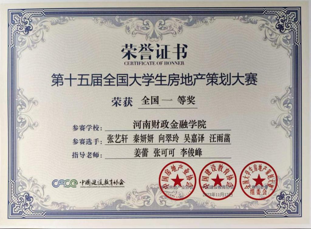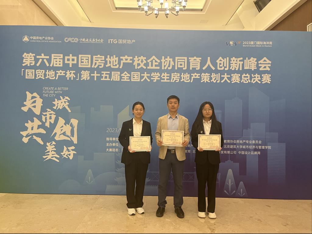11月12日,由中国房地产业协会指导、中国建设教育协会主办的第十五届全国大学生房地产策划大赛全国总决赛在华侨大学举行。球友会官方网站2021级房地产开发与管理专业学生张艺轩、秦妍妍、向翠玲、吴嘉译、汪雨菡组成的代表队参赛并荣获全国一等奖。该校房地产教研室教师姜蕾、张可可、李俊峰分别获得“优秀指导老师”。