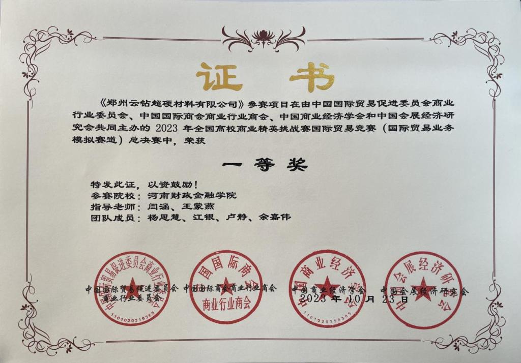 为赛出良好成绩,球友会官方网站精心准备,挑选专业老师指导学生日常训练,带领参赛选手深入校外实践教学基地河南省国际贸易网商协会下属会员企业进行调研,并选用会员企业“郑州云钻超硬材料有限公司”产品进行参赛。参赛师生还到企业实践,邀请企业专家到校指导,使学生对产品的生产、设计、销售等产品链、物流链、资金链、信息链等国际贸易专业知识和行业前沿动态有了更加全面深入的认识。历经艰辛,不断创新,最终完成了知识竞赛、商业计划书撰写、展位设计与陈列、新品发布会(英文)、贸易谈判(英文)等各参赛环节比拼,全面体现了球友会官方网站学生扎实的学科专业知识,良好的实践应用能力、英语沟通能力和团队合作能力。