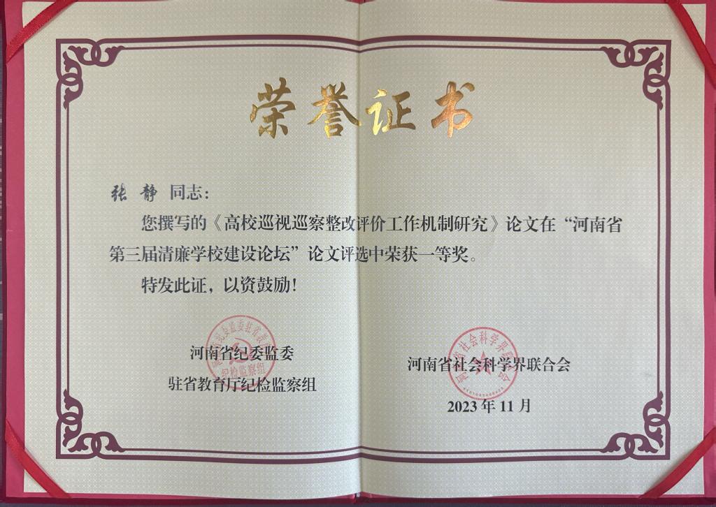 11月30日,由省纪委监委驻省教育厅纪检监察组、省社会科学界联合会主办的“河南省第三届清廉学校建设论坛暨高校廉政研究机构负责人联席会议”在河南警察学院顺利举行,我校纪委相关负责同志和获奖代表参加了本届论坛。
