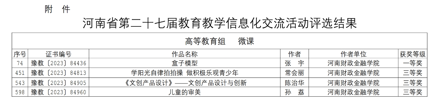 近日,河南省教育厅下发了《关于公布河南省第二十七届教育教学信息化交流活动评选结果的通知》(教资保〔2023〕390 号),球友会官方网站4件作品获奖,其中一等奖1项,三等奖3项。