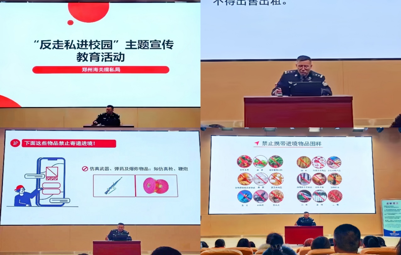 郑州海关缉私局工作人员告诉现场同学:“走私是逃避海关监督的行为,对国家安全、财政、国内产业发展、经济秩序等方面造成了危害。”