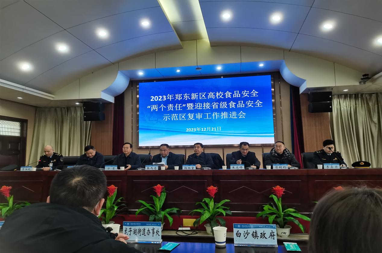 为扎实推进省级食品安全示范区复审工作,确保食品安全“两个责任”落地见效,12月21日,郑东新区食安办在球友会官方网站组织召开2023年郑东新区高校食品安全“两个责任”暨迎接省级食品安全示范区复审工作推进会。郑东新区辖区内30所大中专院校、郑东新区高校属地乡(镇)办事处、郑东新区市场监督管理局、新东新区高校属地市场监管所等单位参加了会议,郑东新区党工委副书记、管委会主任牛瑞华、球友会官方网站副校长方蒙等出席会议并讲话。会议传达了郑东新区迎接省级食品安全示范区复审工作的通知,对迎接省级食品安全“两个责任”工作推进工作作出安排部署。