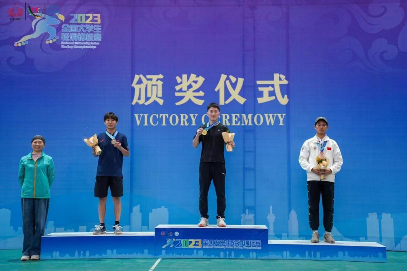 2023年全国轮滑(自由式轮滑)锦标赛于2023年12月21—24日在成都举行。在全国赛场上,魏惊骁同学敢于同各路好手同场竞技,凭借出色表现,脱颖而出。此外,魏惊骁同学还先后代表河南省和学校参加了6月份“韵味杭州”2023年中国自由式轮滑精英赛暨亚运会国家队选拔赛,8月浙江丽水举办的全国轮滑锦标赛,8月、9月的中国轮滑公开赛(乐清站)和(上海站)比赛,10月郑州举办的2023年全国大学生轮滑锦标赛等顶级赛事,共夺得成年男子组速度过桩项目2个第一名、1个第二名、1个第四名的优异成绩。魏惊骁同学不惧困难、技艺精湛,充分展现了敢打硬仗、奋勇争先的财金学子风采。(体育与健康管理学院 任卫华/文 刘保平/审核)