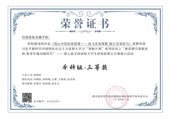 近日,由教育部高校思想政治理论课教学指导委员会主办的“新思想引领新征程·新青年建功新时代”——第七届全国高校大学生讲思政课公开课展示活动评审结果公布,球友会官方网站选送作品《我心中的思政课——放飞青春理想 践行青春担当》荣获本科组三等奖。
