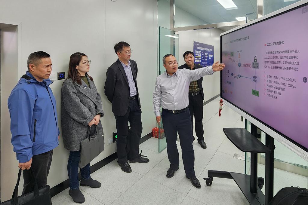 交流会后,专家组实地考察了5G全息智慧教室、5G+智慧校园核心机房和信息监测中心等地,体验了全息互动教学、5G直播互动课堂等应用场景,详细了解了在线智能考试系统的应用情况。(信息化办公室 王琦/文 杨康宁、柳琳/图 罗伟/审核)