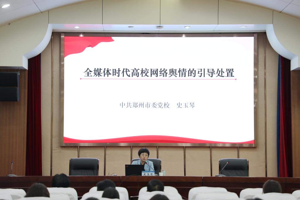 为进一步提高学校宣传思想工作队伍水平,提升学校宣传思想工作整体质量,4月23日,学校在龙子湖校区一楼会议室开展新闻宣传专题培训。河南日报社·大河网高级记者丁赛赛、中共郑州市委党校副教授史玉琴应邀作专题培训。各单位新闻宣传通讯员、信息员、网评员,校融媒体中心学生记者团成员,校青年传媒中心学生记者团成员等参加培训。党委宣传部相关负责同志主持培训会。