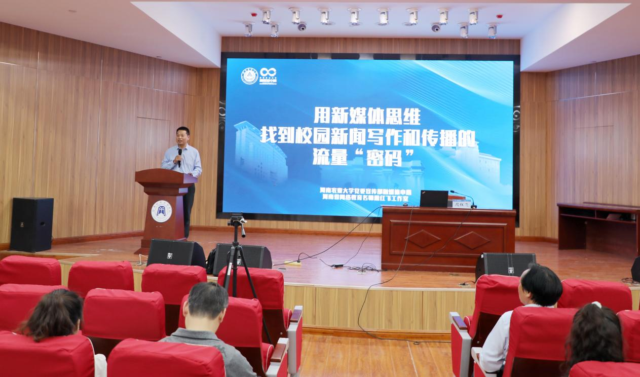 为进一步加强学校新闻宣传队伍建设,满足各单位新闻宣传工作需要,提升新闻宣传工作整体水平,5月7日,学校在龙子湖校区音乐学院报告厅开展第二期新闻宣传专题培训,邀请河南农业大学党委宣传部副部长周红飞作专题辅导报告。各单位负责新闻宣传的负责人、各单位新闻宣传通讯员、校融媒体中心学生记者团成员、校青年传媒中心学生记者团成员、宣传部全体工作人员等参加培训。党委宣传部负责人主持培训会。