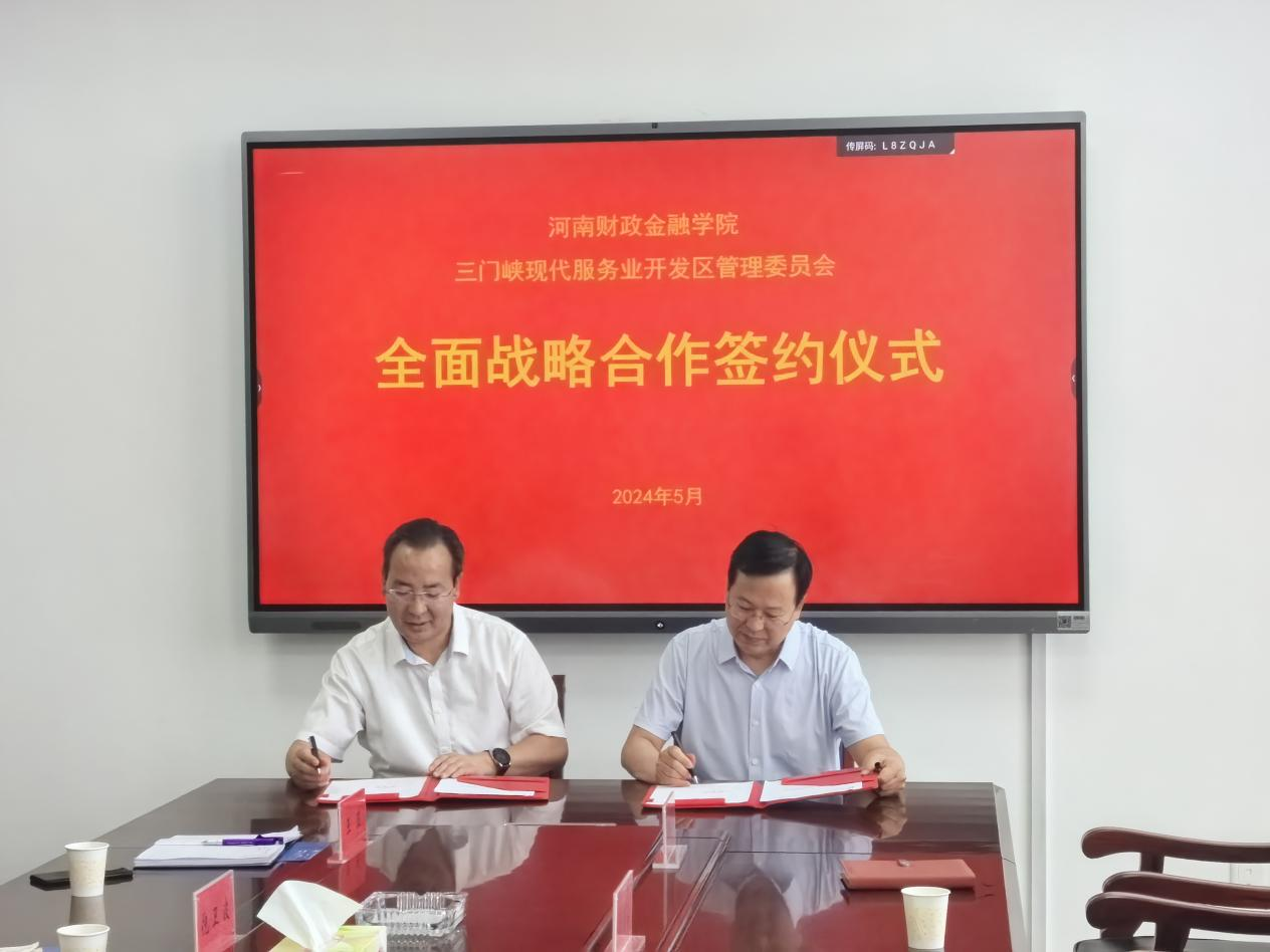 签约仪式上,方蒙代表学校与三门峡现代服务业开发区签订了《全面战略合作协议》。双方就人才需求与共享校地校企产学合作、学生就业实习、理论与实践融合等方面展开深入探讨。