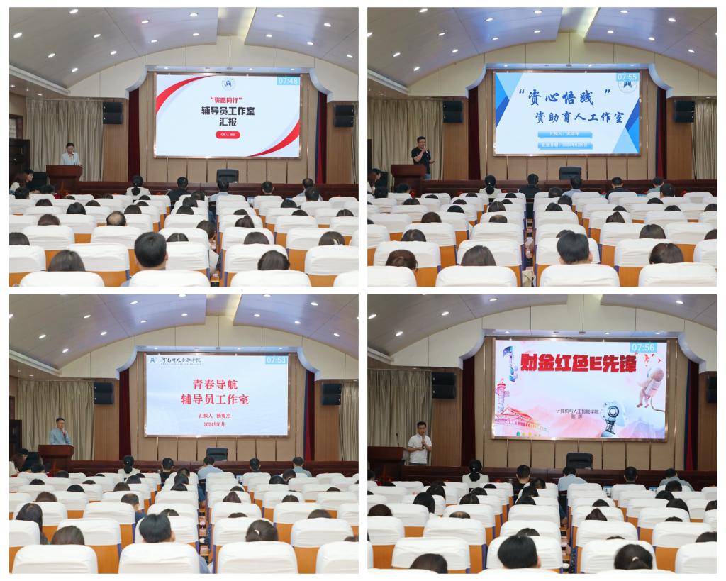 通过综合申报材料、现场汇报、专家评审,最终评选出“思想理论教育与价值引领”方向主工作室“青春导航——辅导员工作室(旅游管理学院)”和副工作室“财金红色E先锋——辅导员工作室(计算机与人工智能学院)”,“学生资助管理”方向主工作室“资路同行——辅导员工作室(教育科学学院)”和副工作室“资学悟践——辅导员工作室(会计学院)”。