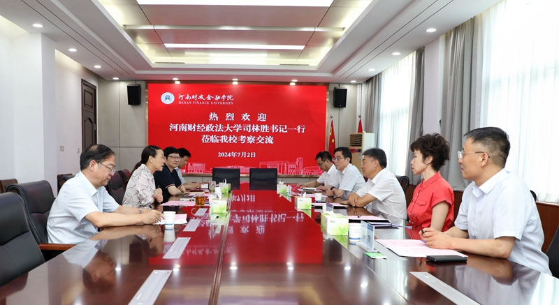 7月2日下午,河南财经政法大学党委书记、校长司林胜,党委副书记高京燕,副校长赵楠、张扬和党委组织部部长罗松远一行来球友会官方网站进行调研交流,校党委书记王雪云、校长李学志、副校长杨伯坚和党委办公室负责同志参加座谈交流,座谈会由李学志主持。