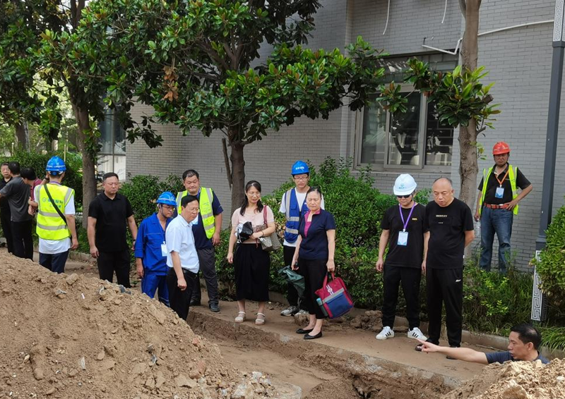面对持续的高温天气,方蒙及其专项工作组对奋战在高温酷暑中的现场管理人员及施工人员表达诚挚的感谢与关怀,并强调在确保自身健康的前提下,全体人员应继续全情投入,共同保障施工安全与质量。检查过程中,专项工作组对项目现场的各项施工情况进行了详尽的检查,包括管材质量、管道铺设、阀门井建设、道路塌陷、回填土处理等多个关键环节,确保整个项目流程严格有序,符合高标准要求。