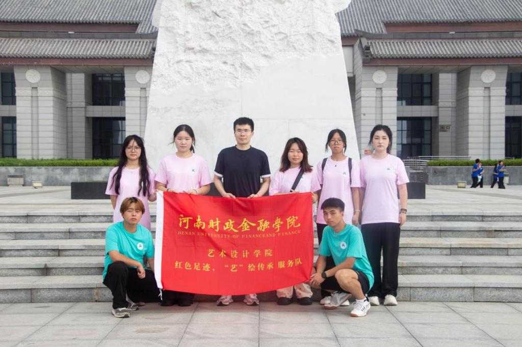7月6日至7月12日,艺术设计学院“红色足迹,艺绘传承”暑期社会实践团队开展了一场重走红色足迹、追溯红色记忆、访谈红色人物、挖掘红色故事、体悟红色文化之旅。本次社会实践活动由团总支负责人郜金良老师带队,通过对河南省多个红色旅游景区实地探访和深入研学,让红色基因、革命薪火代代传承。实践团队满载着对革命历史的深刻感悟与对红色精神的崇高敬意,将这份宝贵的精神财富带回了家乡社区,开展了一系列别开生面的志愿服务活动,以实际行动传承红色血脉,服务基层群众。