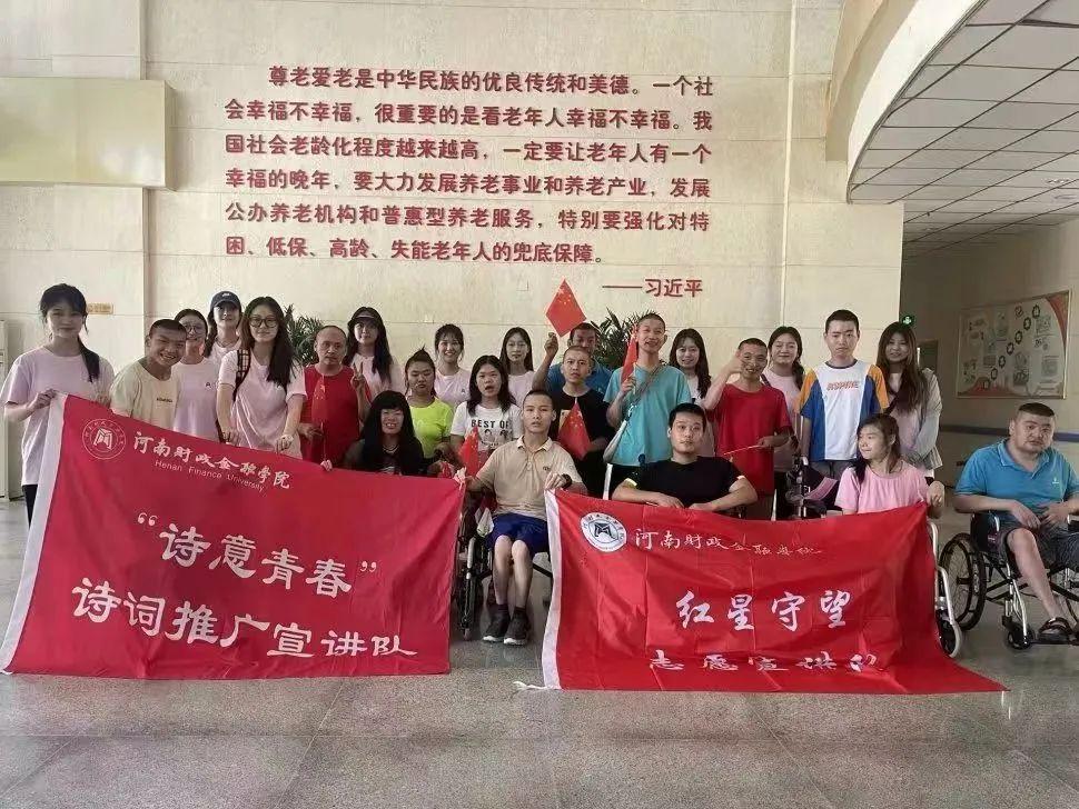 7月6日,校团委“诗意青春”诗词推广宣讲团和“红星守望”志愿宣讲团队走进了郑州社会福利院,开启了一段充满爱与责任的服务。诗意青春诗词宣讲团为福利院的养员们讲解了经典诗篇《水调歌头》,并通过手工互动等多种方式带领养员们走进了诗词的世界。红星守望宣讲团的同学们给养员们讲解国旗的含义和象征,激发了养员们的爱国情怀。最后实践团通过身边事情,以抗震救灾为例以小见大讲解雷锋精神,让养员们深刻体会到了中华人民的优秀品质和精神风貌,彰显人性的善良和勇敢。