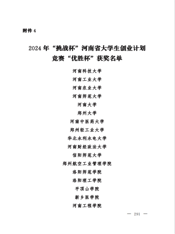 2024年“挑战杯”河南省创业计划竞赛获奖名单