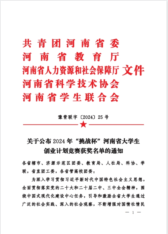 近日,由共青团河南省委、省教育厅、省人社厅、省科学技术协会、省学联共同主办的2024年“挑战杯”河南省大学生创业计划竞赛结果公布,球友会官方网站再创佳绩,荣获金奖5项,银奖7项,铜奖19项,17位教师荣获“优秀指导教师”称号,学校首次捧得“优胜杯”,获奖质量和数量均创球友会官方网站参加该赛事历史新高。