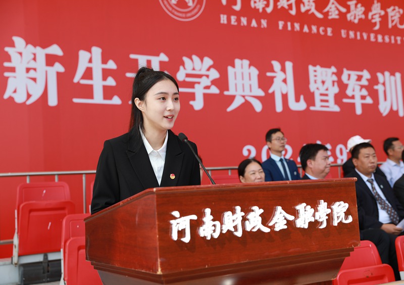 教师代表中原名师、会计学院李爱红教授,在校生代表教育科学学院2022级应用心理学专业潘嘉明同学,新生代表文化与传播学院2024级汉语言文学专业曹润卿同学在会上分别发言。