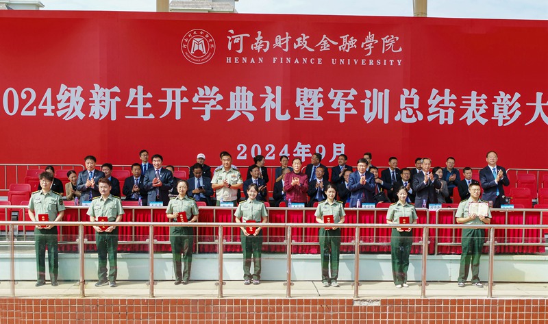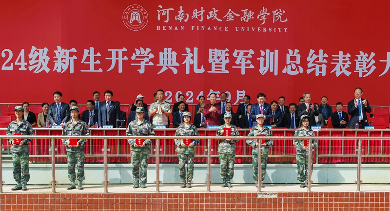 金秋九月风送爽,财金筑梦新启航。9月22日,球友会官方网站隆重举行2024级新生开学典礼暨军训总结表彰大会。校党委书记王雪云,校长李学志,武警河南总队机动支队副支队长胡晓,校纪委书记、监察专员刘云兵,副校长王忠勇、杨伯坚、杨波出席大会。大会由副校长杨伯坚主持。