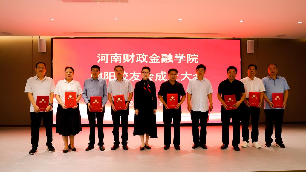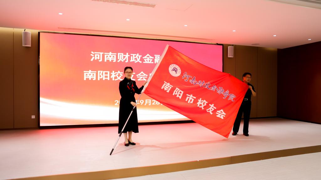 在与会校友的共同见证下,颜敏为南阳市校友会授旗、赠送纪念品并为第一届理事会组成人员颁发聘书。