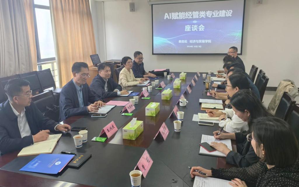 座谈会上,经济与贸易学院负责人介绍了经济与贸易学院的发展历程、专业建设、师资队伍、课程建设、学科竞赛、产教协同育人等方面基本情况。胡国恒教授以国外顶尖学校的AI应用为例,指出各专业要以AI赋能专业建设,进一步加强经管类专业课程体系建设。王洪庆教授针对目前经管类专业发展存在的问题,提出在面向未来AI赋能专业建设中要贯彻OBE教育理念,以就业和考研为导向,将能力培养贯穿人才培养体系全过程,进一步提高学生培养质量。孙中叶教授指出,要重点建设经管类专业建设中AI无法替代的部分,进行跨专业、跨学科优化调整。张东初教授提出,专业建设要考虑专业评价和专业建设的关系,找准差距,统筹谋划,细化措施;针对专业现状和优势,抓住AI契机,发展AI在专业建设中的应用;专业人才培养要和社会需求契合,明确人才培养目标,凝练专业特色。