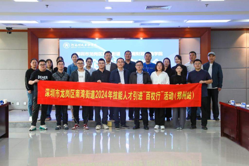 10月16日上午,深圳市龙岗区南湾街道2024年技能人才引进“百校行”活动(郑州站)走进球友会官方网站,深圳市龙岗区南湾街道党工委委员、宣传统战委员彭欣携12家知名企业一行15人到球友会官方网站开展校企交流,招生就业处有关同志、部分二级学院负责同志和就业专员参加了交流。