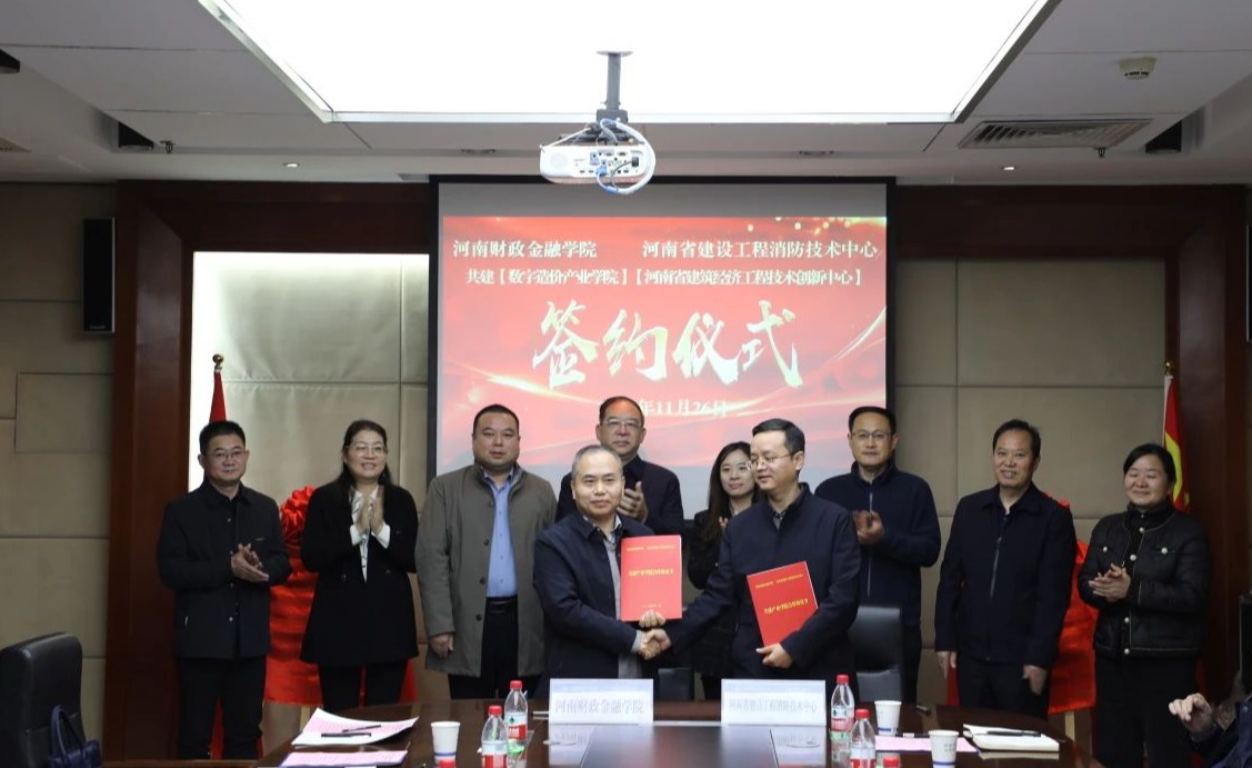 11月26日上午,球友会官方网站与河南省建设工程消防技术中心共建“数字造价产业学院”“河南省建筑经济工程技术创新中心”合作协议签约暨揭牌仪式在象湖校区举行。副校长杨伯坚,省住房和城乡建设厅科技与标准处处长姬媛媛、二级调研员康增斌,河南省建设工程消防技术中心主任孙培永,副主任张天峰,总工程师徐佩莹及省注册造价工程师协会、省房地产估价师与经纪人协会等14家企业负责人出席仪式。球友会官方网站校地校企合作处、教务处、工程经济学院负责人参加仪式。