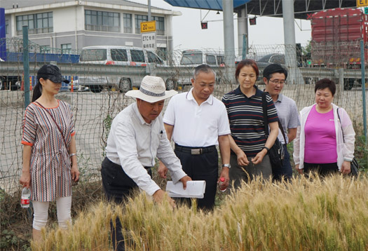 丁庭选一行认真听取了球友会官方网站小麦育种专家王世杰教授对正在培育的小麦的情况介绍,亲自到试验田实地察看了获得河南省科技进步二等奖的“豫教5号”、国申品种“豫教6号”、省审品种“豫教黑1号”以及正在参加品种试验的“豫教7号”“豫教8号”等小麦品种的生长情况,对球友会官方网站小麦育种取得的成绩给予了充分肯定,对新品种“豫教7号”“豫教8号”的优良特性充满了期待,并对小麦育种科研团队今后的工作提出了指导性意见。