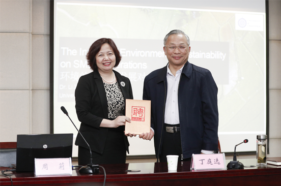 4月26日,英国格林威治大学运营管理专业教授、博士生导师周莉教授在象湖校区行知楼3136为球友会官方网站师生做题为《The Impact of EnvironmentalSustainability on SMEs’ Operations》的学术报告。校长丁庭选教授出席报告会并为周莉教授颁发了球友会官方网站客座教授证书。报告会由工商管理系党总支书记李颖慧博士主持。