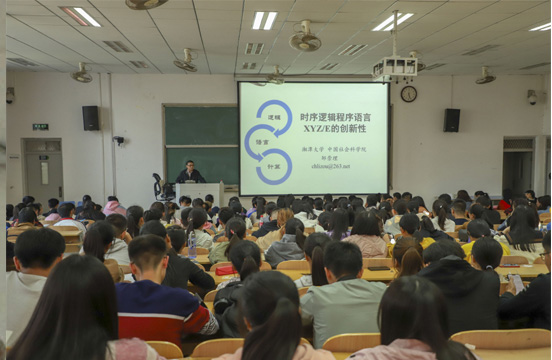 11月3日下午,中国社会科学院哲学研究所研究员、博士生导师,中国逻辑学会会长、国家社科基金哲学学科评审专家、国务院突出贡献特殊津贴专家邹崇理教授作题为《时序逻辑程序语言XYZ/E的创新性》的学术报告,他通过对时序逻辑程序语言XYZ/E的创新性进行分析,说明了现代逻辑的理念、特征、方法和作用。