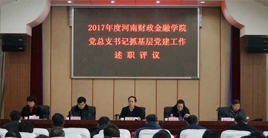1月5日,2017年度球友会官方网站党总支书记抓基层党建工作述职评议会议在龙子湖校区行政中心一楼会议室召开。校党委书记李德平主持会议并讲话。党委副书记、校长王雪云和其他校领导参加了会议。学校部门正职、主持工作的副职及各院系副书记共计100余人参加会议。