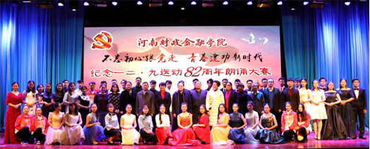 为纪念“一二•九”学生爱国运动82周年,以实际行动深入学习宣传贯彻党的十九大精神,引领广大青年学生争做“有理想、有本领、有担当”的时代新人,两校区团委经过层层选拔,各推荐了8组选手参与比赛。两校区团委、部分团总支的负责同志和600余名学生参加此次活动。活动邀请龙子湖校区迟俊霞、孟玉红、王丹莉,象湖校区李煜辉、武维潇、王春晖等6位老师担任评委。