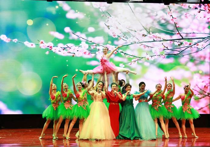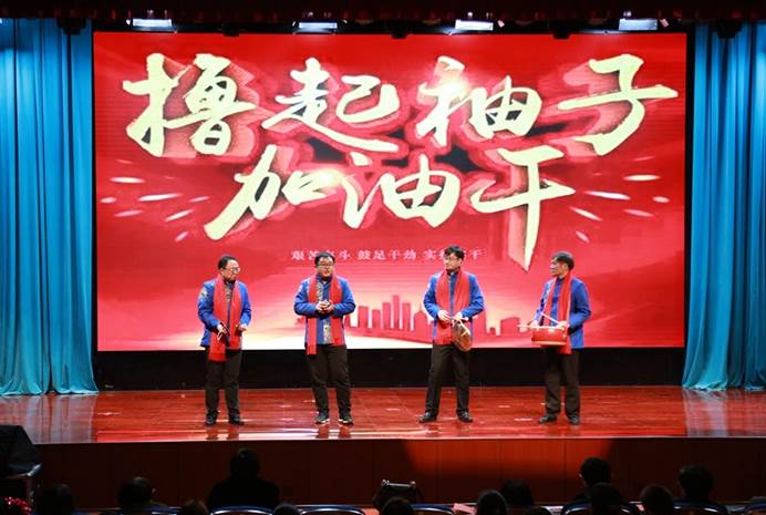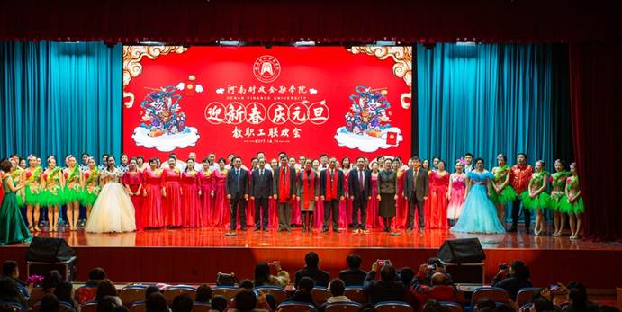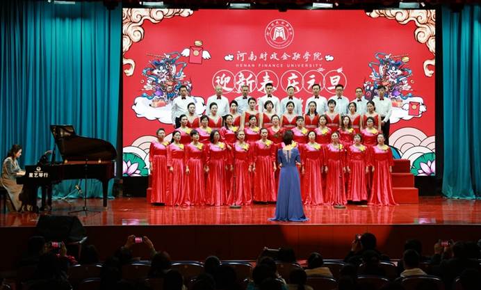 联欢会在慷慨激昂的大合唱《歌唱祖国》中拉开序幕,伴随着动感的音乐和欢快的舞姿,精彩纷呈的节目依次上演。钢琴四重奏《春节序曲》热烈欢腾、欢乐有爱,舞蹈《我和我的祖国》舞姿曼妙、动感欢快,情景剧《孝敬父母》温馨和睦、感人肺腑,三句半《不忘初心谋发展》紧贴实际、诙谐幽默,情景剧《焦裕禄》选段“老百姓心中有杆称”情真意切、感人至深,女声演唱《在水一方》优雅知性、娓娓动人,舞蹈《九儿•红高粱》热情奔放、活力四射,《时装秀》青春靓丽、时尚俊逸,豫剧《红色娘子军》选段让大家感受到了巾帼不让须眉的气概,歌伴舞《春天的芭蕾》让我们感受到春天的温暖和美好。配乐词朗诵《沁园春•雪》由全体校领导表演,他们一改平日工作的严肃,用饱含深情、慷慨激昂的声音抒发了对伟大祖国的热爱和对美好明天的向往,将整场联欢会推向高潮。在激情雄壮的大合唱《团结就是力量》中,一年一度的“庆元旦、迎新春”教职工联欢会圆满落下帷幕。