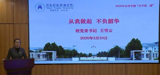 校党委书记王雪云以《从我做起,不负韶华》为题,从“我们正在经历什么、应该感悟什么、应该学会什么”三个方面,为全体师生员工上了开学第一课。她指出,实践证明,增强“四个意识”、坚定“四个自信”、做到“两个维护”,是做好各项工作的制胜法宝,党的坚强领导是我们打赢这场没有硝烟的战争的最硬底气。这场疫情防控阻击战,让人们充分理解社会主义能够集中力量办大事的深刻道理,中国特色社会主义制度优势是我们战胜一切困难的不二法宝。国家需要时的责任担当、同胞有难时的守望相助、共克时艰的众志成城,是我们中华民族战胜一切困难的不竭力量,伟大的民族精神是我们战胜一切困难的强大力量。在疫情面前,“90后”“00后”的表现让我们对未来更加充满信心和希望,让我们看到了“青年强则国家强”的美好图景。