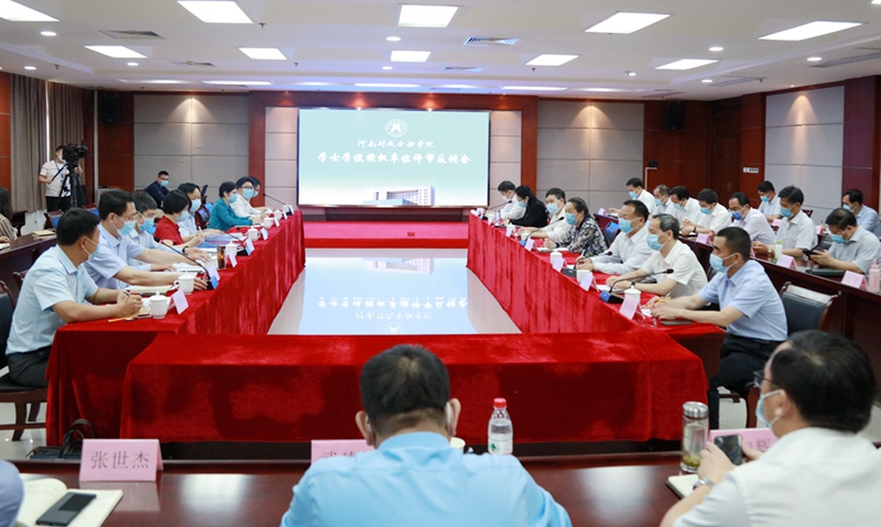 5月22日,由华北水利水电大学副校长刘汉东教授任组长,河南省学位委员会办公室领导刘慧玲,郑州大学王海杰教授,河南工业大学孙中叶教授,郑州轻工业大学张东初教授,河南财经政法大学方拥军教授,河南省学位委员会办公室周朝霞、张华平为成员的河南省新增学士学位授权单位与授权学科(专业)审核专家一行8人莅临球友会官方网站,对球友会官方网站申请增列学士学位授权单位和4个授权学科(专业)资格进行审核评审。