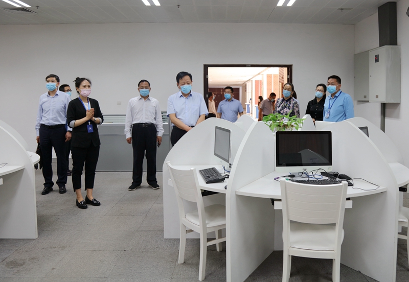 专家组一行实地考察实训室、图书馆等