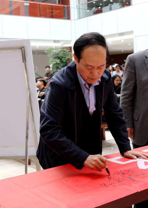 最后,与会领导和师生代表在“沐浴书香·放飞梦想”的横幅上签字,正式拉开了此次读书月系列活动的序幕。