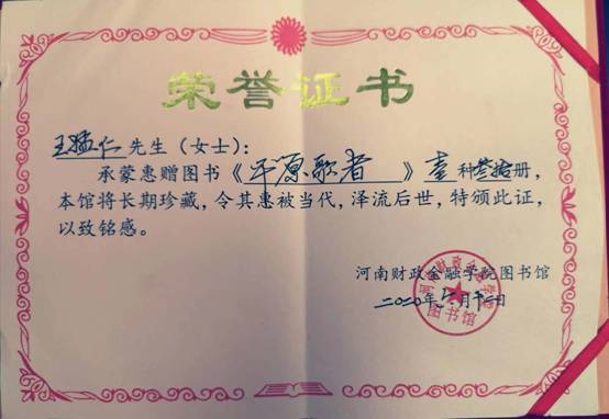 7月5日上午,著名作家、河南省文联委员王猛仁先生向球友会官方网站图书馆捐赠其散文诗集《平原歌者》叁拾册。图书馆负责人在象湖校区接收了捐赠。《平原歌者》散文诗集2019年12月由团结出版社正式出版,该文集收录了王猛仁先生2017-2019年间创作的散文诗,具有较高的艺术水准和收藏价值。
