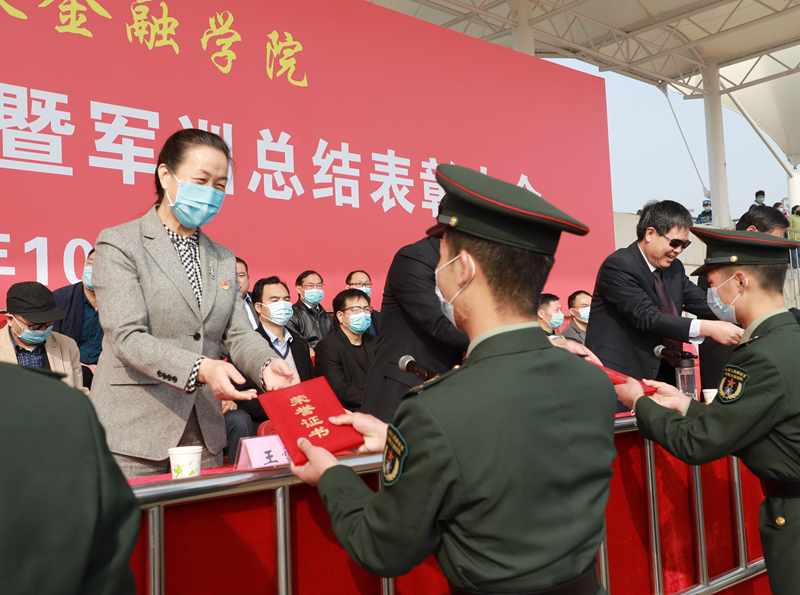 校领导为优秀教官代表、军训标兵代表等颁奖 |