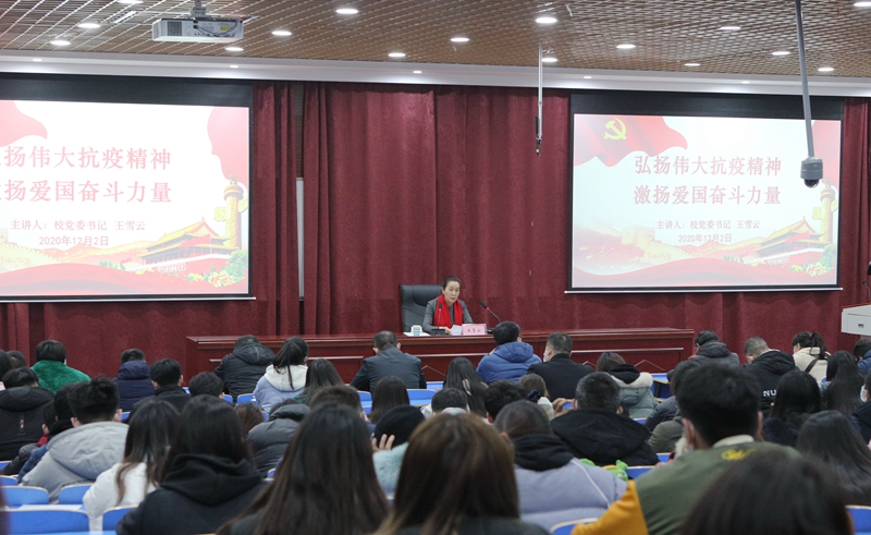 12月2日晚,校党委书记王雪云在龙子湖校区为2020年党员发展对象培训班部分学员讲授了一堂精彩的专题党课。部分学院党总支书记、学生党支部书记和教师与党校学员一起聆听了党课。