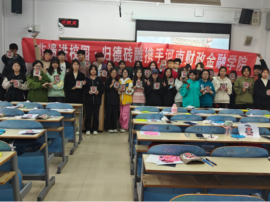 潘老师讲述了自己与砖雕文化的故事,向师生们展示了自己的砖雕作品《关公》制作的技术要点,同学们倍感兴趣,跃跃欲试。在潘老师的指导下,大家出色地完成了关公脸谱的制作。此外,潘老师还带领大家欣赏了他雕刻的少林寺、商丘火神台、归德府、古城民居样板等砖雕艺术品,带领师生领略砖雕文化的浓厚价值底蕴,以及他在创作过程中坚守的创新精神、工匠精神。