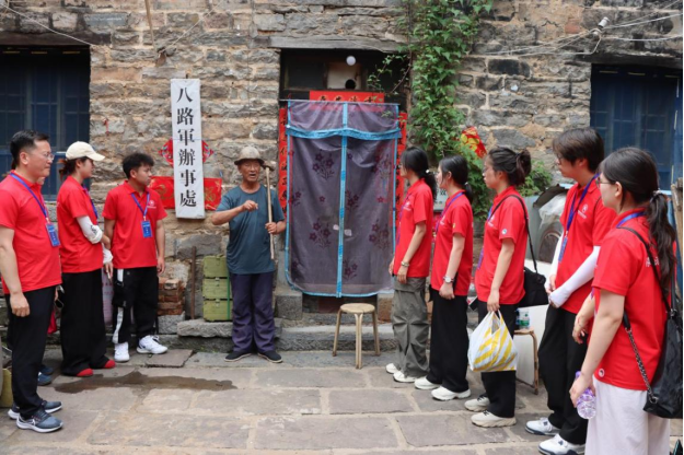 在对郭亮村村委负责同志的专访中,实践队员们进一步了解到,新时代郭亮村是如何在党的领导下,秉承郭亮精神,实现从贫困山村到旅游名村的蜕变,感受到了党带领群众脱贫致富的坚定决心与务实举措。此外,队员们还参观了红色实景演绎《太行山传奇》基地,通过沉浸式重温太行山抗日根据地艰苦卓绝的斗争史诗以及军民同心、血火淬炼的英雄事迹,全体师生接受了一场深刻的思想洗礼,进一步筑牢理想信念根基。参观后,多位师生眼含热泪,他们表示,从未如此真切地感受到“一寸山河一寸血”的分量,要将爱国情转化为强国志、报国行,让红色基因在育人实践中绽放时代光芒!