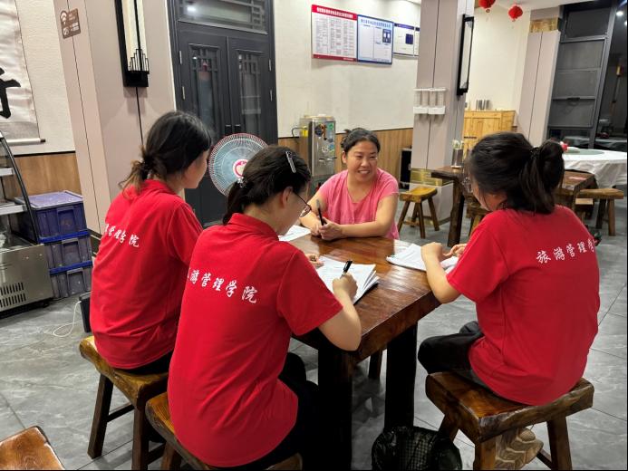实践队员对南坪景区民宿经营者进行岗位调研并发放调查问卷