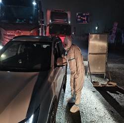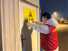 20级计科3班王子芊同学,冒着风雪,在安阳市内黄县当地卡点处值守,负责协助登记车辆信息、测量体温、防疫政策宣传等。