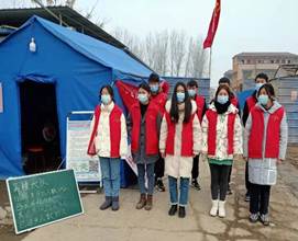 20级物联网马曼曼同学,积极参加家乡的防疫志愿者工作,在开封市杞县高阳镇聚宝岗村负责村民进出信息登记、体温检测、防疫宣传等工作。