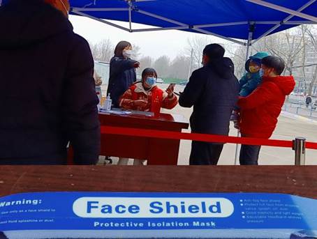 2021级保险学二班李梦涵同学,积极学习当地疫情防控相关政策,踊跃报名参与所在地志愿服务,1月10日在安阳市文峰区紫薇大道街道石袁社区一号检测点负责录入核酸检测人员信息,维持现场秩序,保障核酸检测工作有序进行。