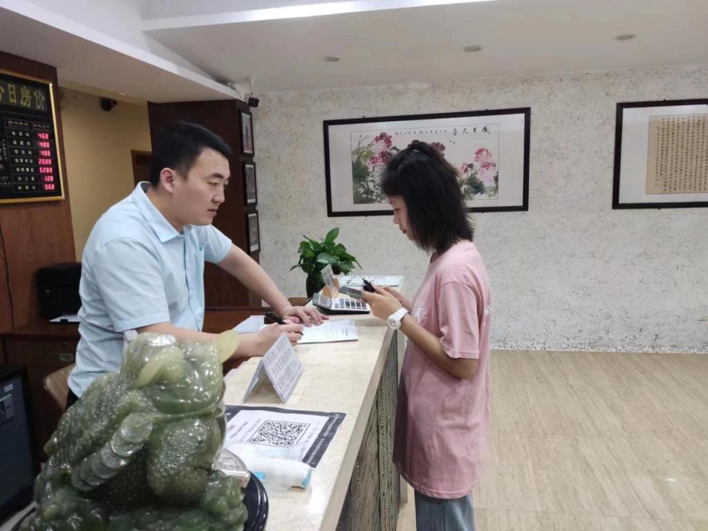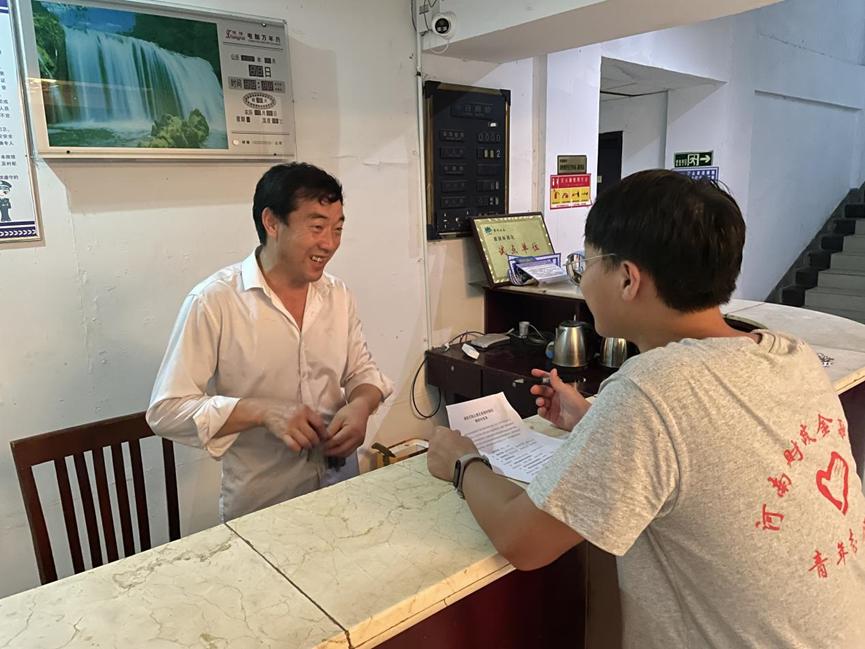 实践队员与天池山景区酒店负责人、游客等交流并发放调查问卷